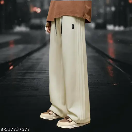 Name : Men’s Pleated Side Jogger Track Pants | Poly-Spandex Stretchable Baggy Fit | Elastic Waist Drawstring | Loose Fit Trousers for Gym, Casual & Streetwear (S-XXL)